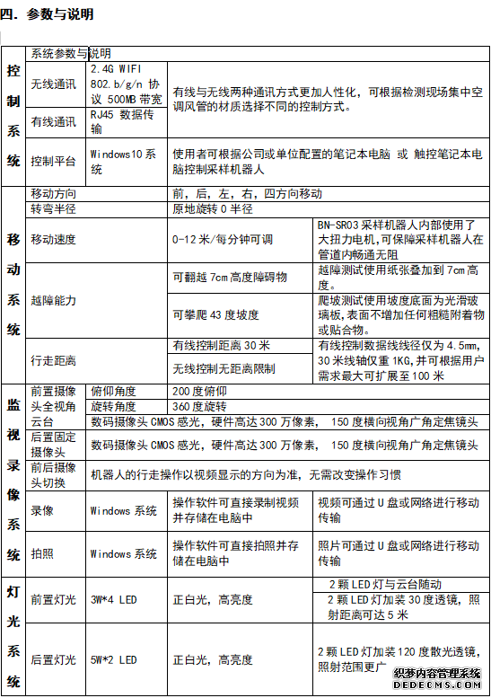 整機分為4大模塊:(50平方厘米輕量化全密閉核心采樣模塊),(機體移動平臺模塊),(前后照明及照明視頻采集模塊),(上層云臺蓋板一體模塊)。
